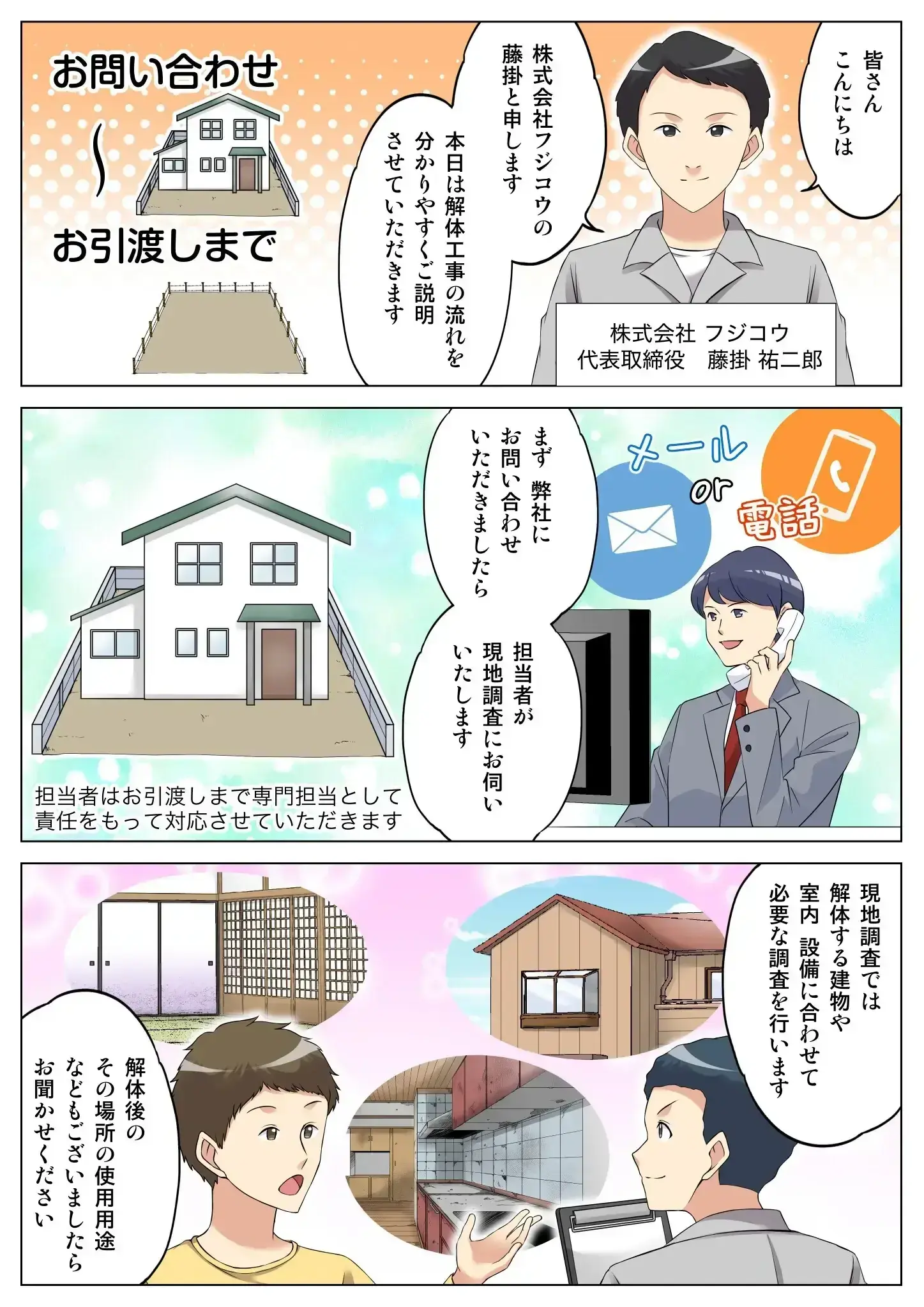 株式会社フジコウでは、解体工事・外構工事を承っております。様々なタイプの解体工事・外構工事を手掛けてきた経験を活かした高品質でスピーディーな施工が可能。現場に合わせた柔軟な対応をいたします。土地の売却やリフォームに伴う工事をお考えの際は、ぜひご相談ください。